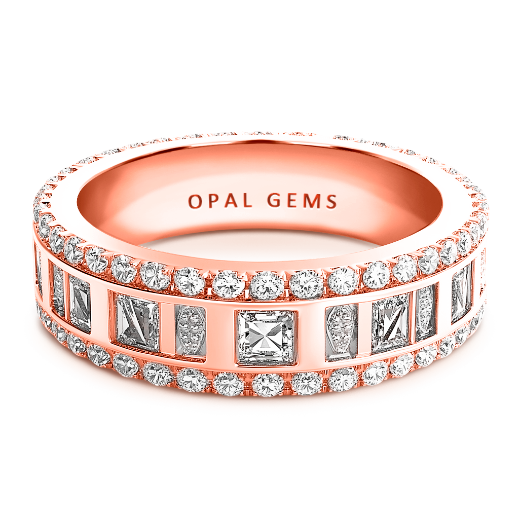 2.50 Carat Men's Eternity Diamond Wedding Band with Custom Roman Numerals in 14K Rose Gold.