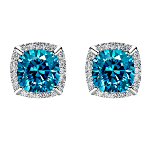 Discover the enduring beauty of these blue cushion diamond stud earrings. Crafted with precision, these studs showcase the soft, romantic shape of the cushion cut, enhanced by the unique and alluring blue diamond. They offer a sophisticated and lasting elegance.