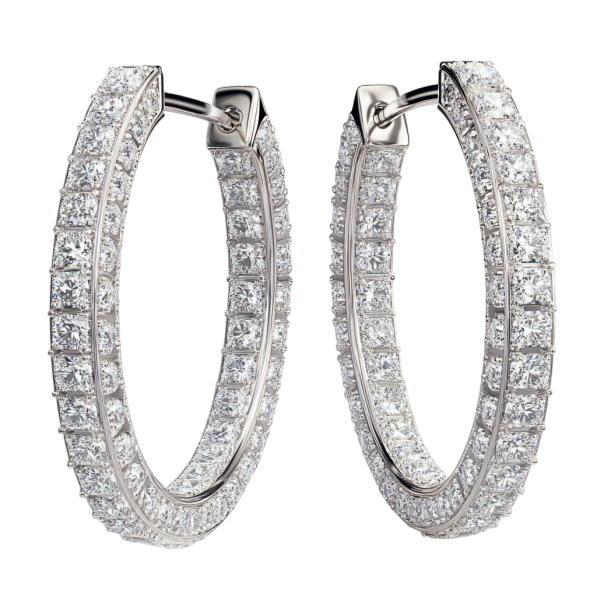 Radiant and refined. These Large Cushion Diamond Hoop Earrings capture and reflect light beautifully, creating a mesmerizing shimmer.