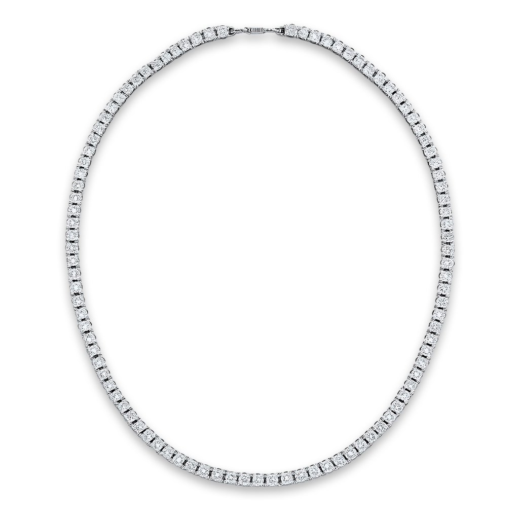 Round Brilliant Straight-Line Diamond Tennis Necklace in 14K White Gold.